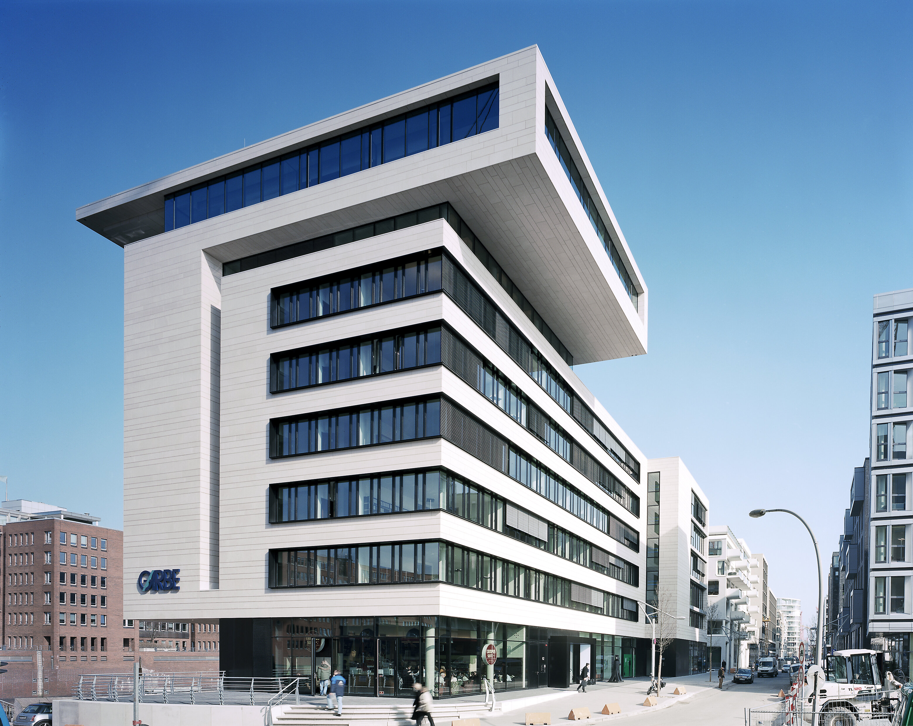 Auch das Headquarter für die Garbe Group in der Hamburger HafenCity steht für diese Ambition. Das ursprünglich für die im Windkraftbusiness tätige P&T Technology AG geplante Bürogebäude spielt mit den Themen von „schweben“, „kragen“ und „balancieren“.