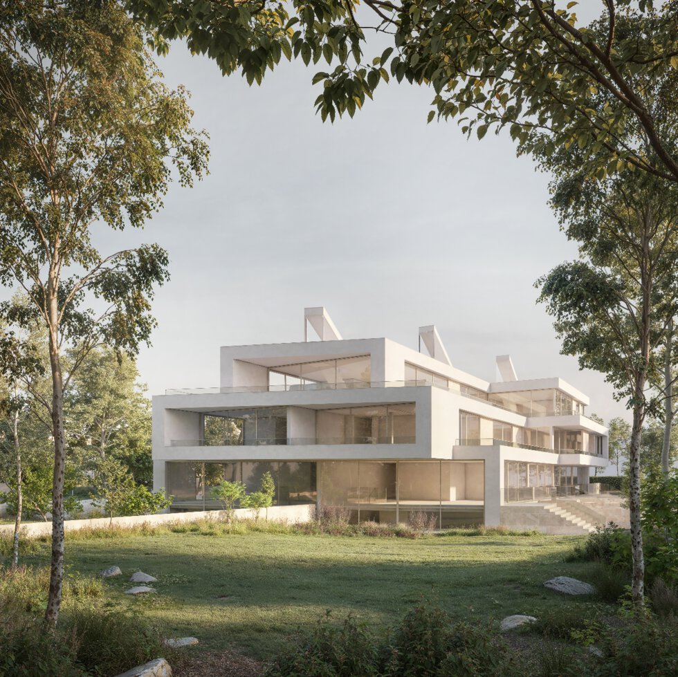 Das Konzept für einen exklusiven Wohnungsbau am Münchner Herzogpark verfolgt die Strategie einer flexiblen Grundstruktur, bei der allen Wohnungen eine direkte Sichtverbindung zum Herzogpark ermöglicht wird.