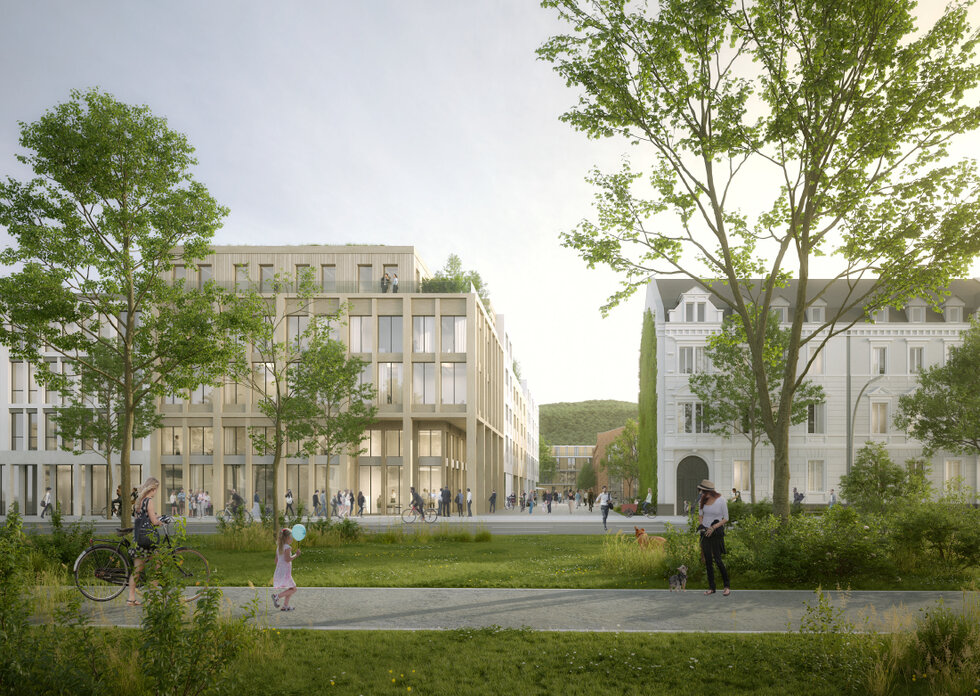 Zusammen mit der Realisierung des Neubaus sollen weitere Bausteine und Nutzungen entstehen, die in Summe ein urbanes Quartier in unmittelbarer Nähe zum Hauptbahnhof generieren.