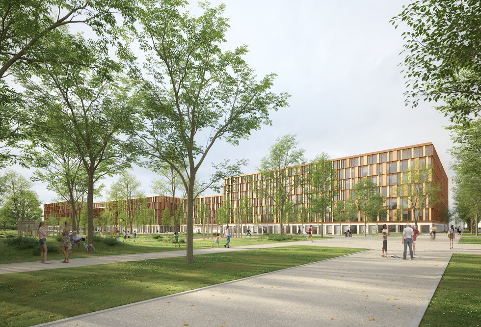 Besonderes Merkmal unseres Konzepts sind die 5 Höfe mit variierenden Freianlagenthemen sowie der besondere Fokus auf eine nachhaltige Bauweise mit kompakten Geometrien und ressourcenschonenden Konstruktionsweisen.