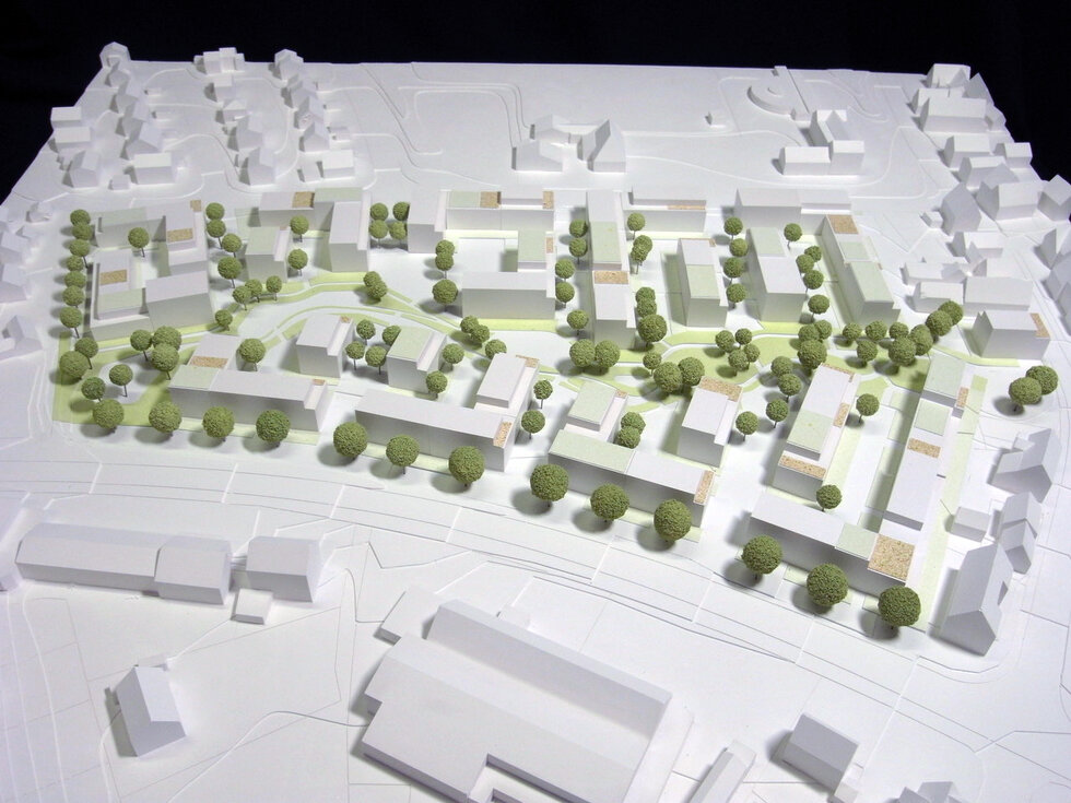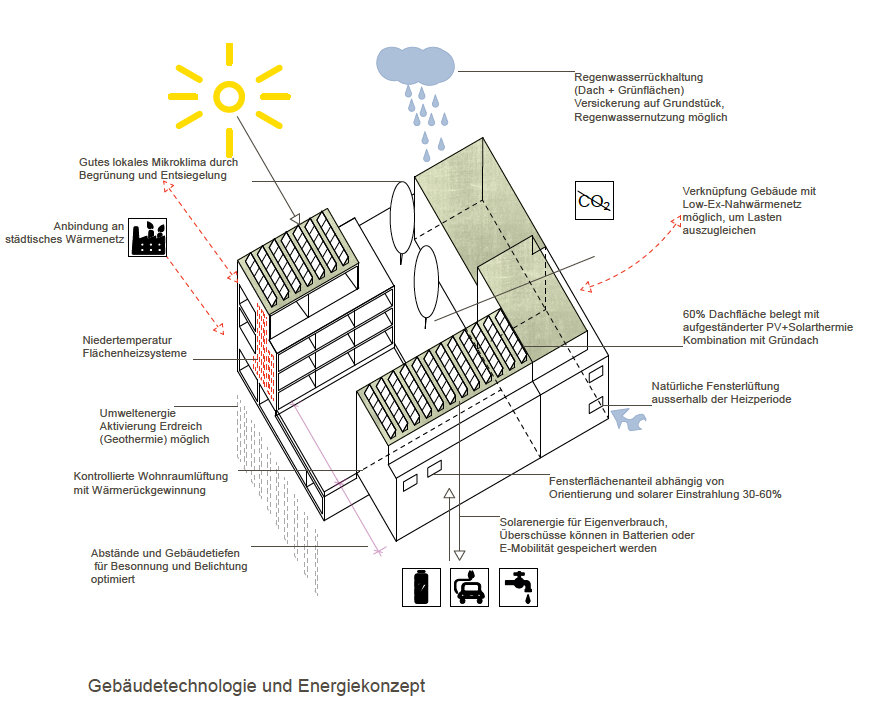 In Zusammenarbeit mit TOPOS Landschaftsarchitekten, Berlin und Transsolar Energietechnik Stuttgart haben wir ein Konzept für eine ressourcenschonende, wohnungswirtschaftliche Nachnutzung des ehemaligen Gewerbeareals entwickelt.