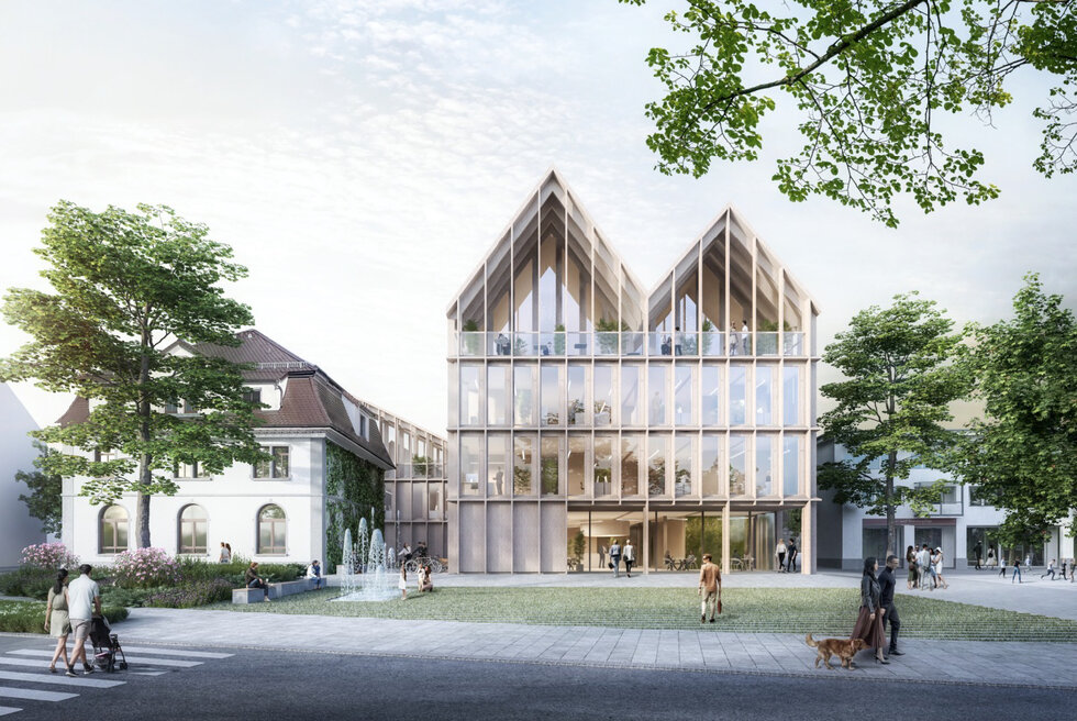 Das Projekt ist als klimapositives Gebäude konzipiert. Das Tragwerk besteht aus einer Holzhybridkonstruktion. Auch der Ausbau und die Fassade sind überwiegend aus Holzwerkstoffen vorgesehen.