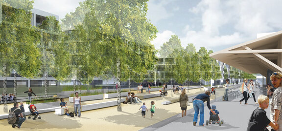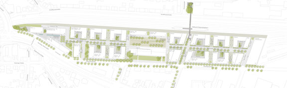Auf dem Areal des ehemaligen Güterbahnhofs wird ein gemischt genutztes Quartier für Wohnen, Arbeiten und Hotelnutzung geplant. Die städtebauliche Planung sieht eine leistungsfähige Hofstruktur vor.