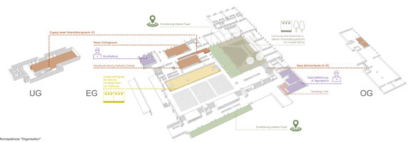 Gleichzeitig sollen funktionale Verbesserungen vorgenommen werden, die insbesondere dem 2.000 Besucher fassenden Saal zugute kommen sollen. Erweiterungen der beengten Foyerflächen wie auch eine Verbesserung der Infrastruktur sind Teil der Restrukturierungsmaßnahmen.