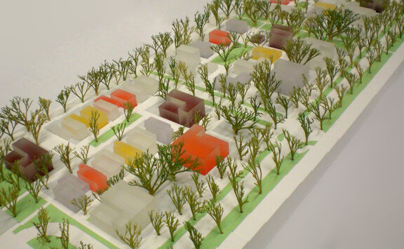 Das Teilgebiet G2 (Kreativquartier) entwickelt sich entlang einer Allee, die von Solitären gesäumt ist. In der zweiten Reihe wurden Cluster verdichteter Bauweisen mit geringer Höhenentwicklung (2-3 Geschosse) zur Aufnahme von Typologien mit „kreativen“ Nutzungsarten (Ateliers, Wohnen +, etc.).