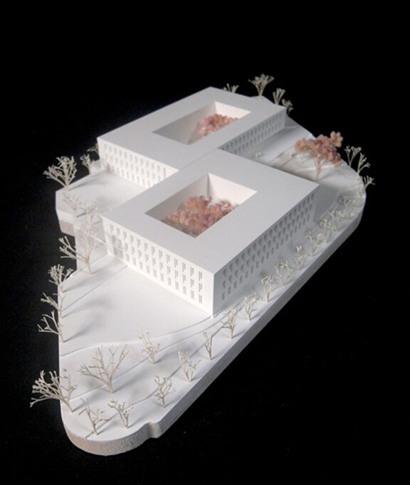 Ein mit dem Neubau der Kreisverwaltung erfährt das Areal der ehemaligen Kaserne eine städtebauliche und inhaltliche Aufwertung – ein neues Gravitäts- und Identifikationszentrum des Quartiers entsteht. Es gilt einerseits stadträumliche Anknüpfungspunkte des Quartiers als Ganzes zu berücksichtigen, wie auch hieraus eigenständige Vorschläge für eine Weiterentwicklung zeitgemäßer, öffentlicher Verwaltungsarchitektur zu entwickeln.