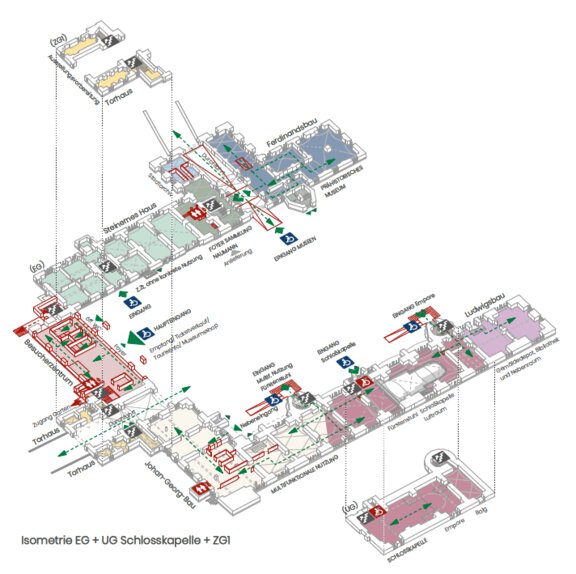 Sämtliche Bereiche sind denkmalgeschützt und müssen trotz dieser Bedingung barrierefrei erschlossen werden.