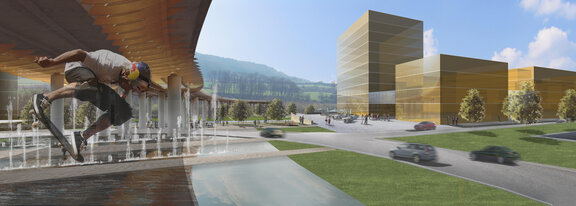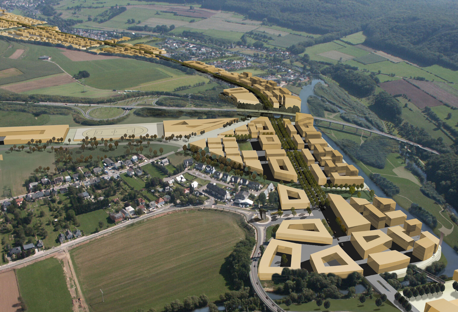 Die aus dem gewonnenen Wettbewerb (mit cba, Luxembourg) hervorgegangene Masterplanung für das Gesamtareal sieht eine ambitionierte Zusammenführung von fünf Gemeinden (Ettelbrück, Diekirch, Erpeldingen, Ingeldorf und Bettendorf) zur Nordstad vor.