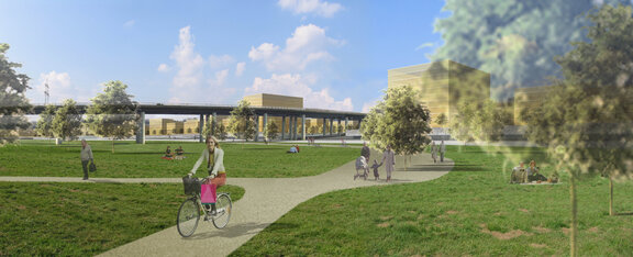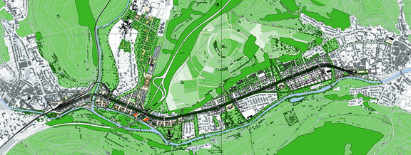 Hierbei sollten Nachverdichtungspotenziale ebenso erschlossen werden wie Neubauflächen auf Konversionsbereichen ausgewiesen werden. Das Szenario betrachtet einen Entwicklungszeitraum von 50 Jahren. Neben Wohn- und Dienstleistungsnutzungen werden auch Gewerbeflächen ausgewiesen. Insgesamt entstehen so in Summe ca. 1 Mio qm BGF im Gesamtgebiet.