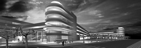 Der neue zentrale Omnibusbahnhof im Norden steht hierbei in Verbindung mit einem Park + Ride Parkhaus auf der Südseite, das ist eine stadträumliche Großfigur mit gewerblichen Nutzungen und Dienstleistungseinrichtungen integriert ist.